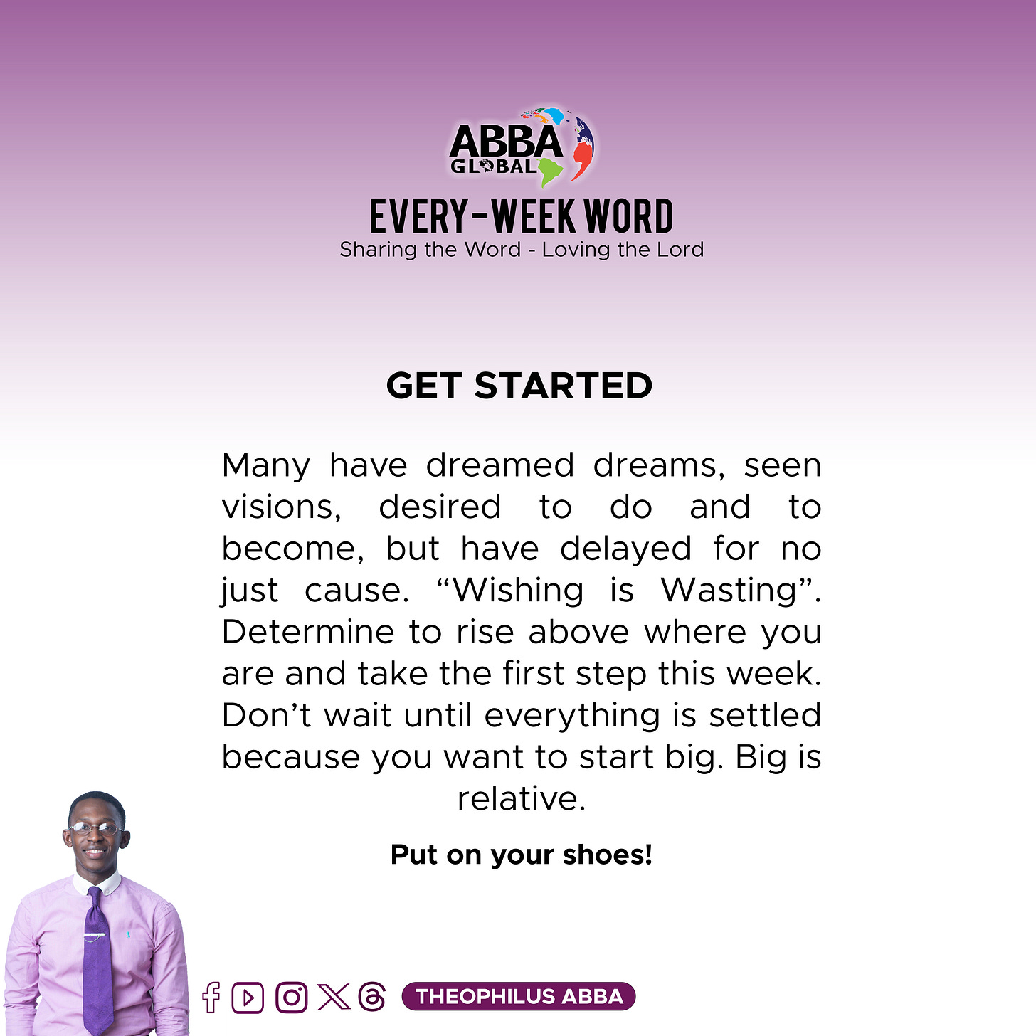 REFLECTION: So nobody will start for me if I don't begin? YES!ACTION PLAN: Irrespective of the happenings around you, make a move to begin.